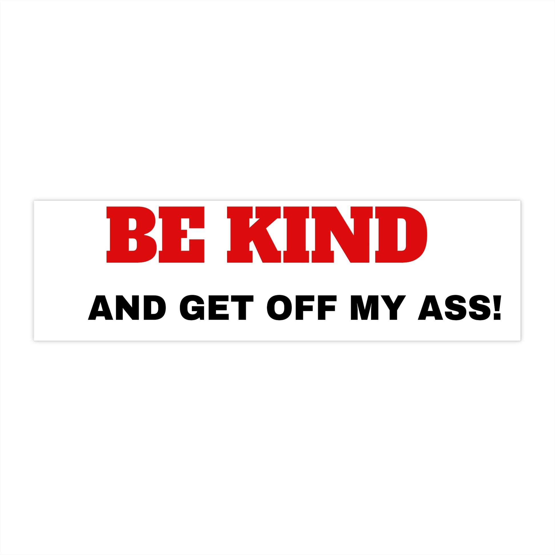 Product Description: "Be Kind and Get Off My Ass" Bumper Sticker